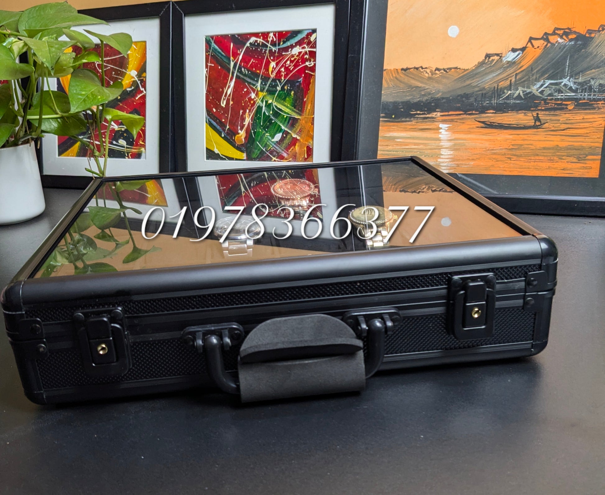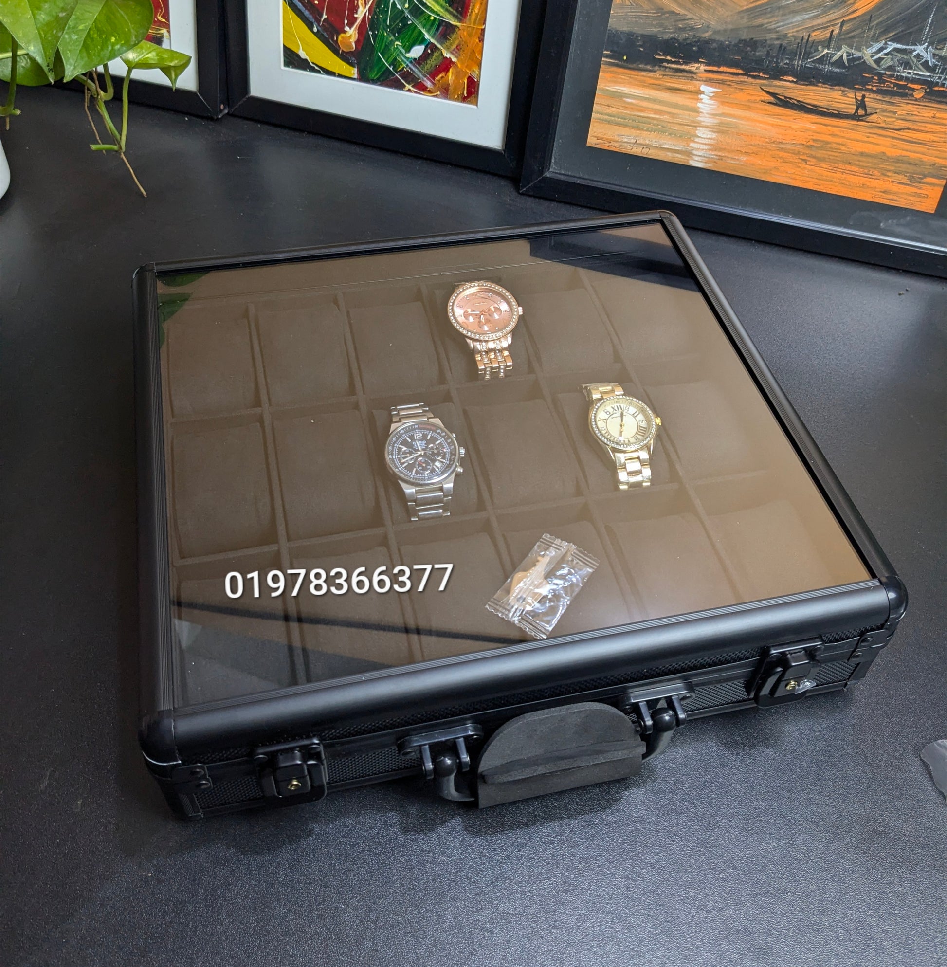 18 Slots Aluminium Watch Organizer Box Dark Green High Materials Top Glass Window